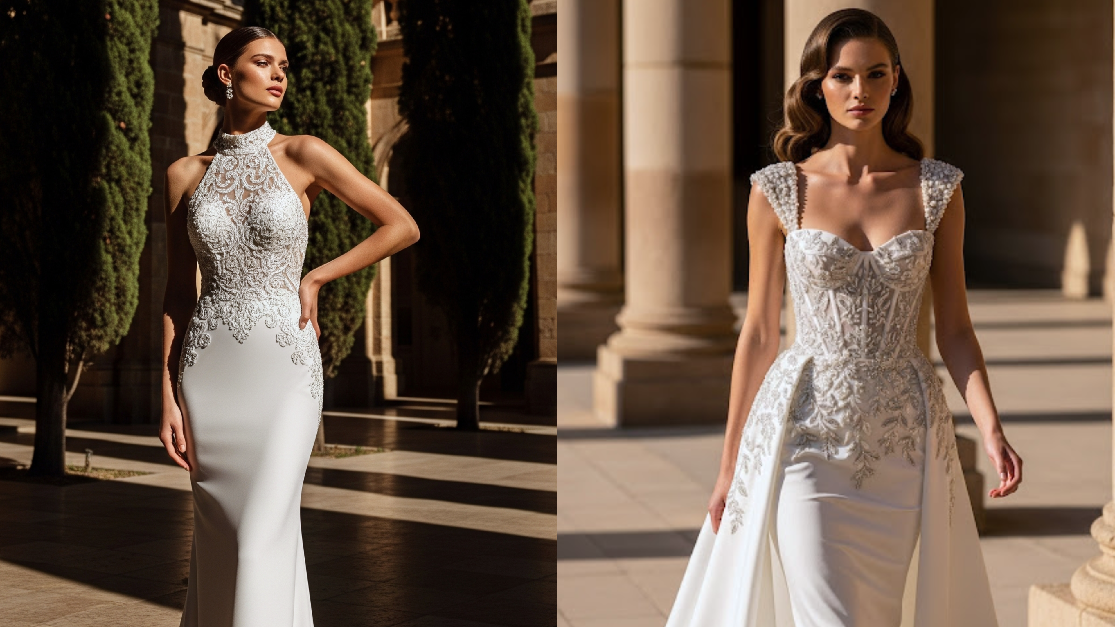 While silhouette is key, don’t overlook fabric and tailoring. A structured gown in satin or mikado holds shape beautifully, while chiffon and tulle bring lightness and movement. Always schedule professional fittings; even a small adjustment can make your gown look custom-made.