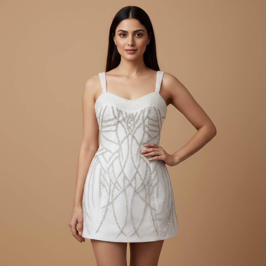 The Arslev gown is a masterclass in high-fashion verticality, designed for a silhouette that is both statuesque and modern. Crafted from a premium, heavy-weight satin, the garment utilizes its reflective surface to emphasize a series of sharp, architectural folds. The design is centered around a sculpted strapless neckline, which serves as the foundation for an intricate, asymmetrical wrap bodice that cinches the waist with precision.